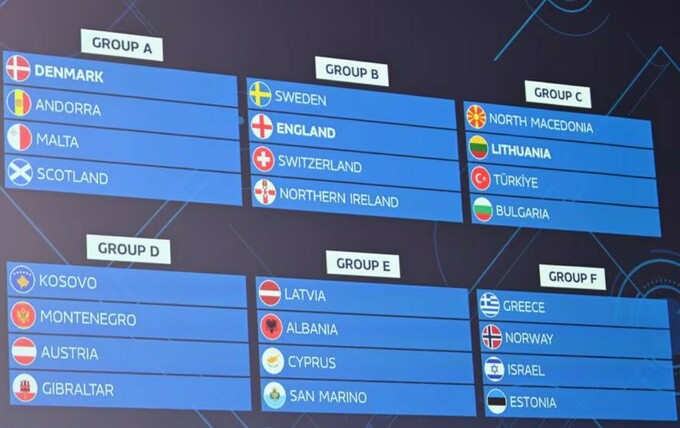 - Група E (господар буде оголошений): Латвія, Албанія, Кіпр, Сан-Марино