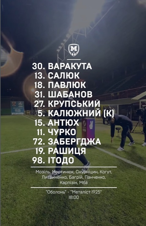 Стали відомі стартові склади на матч Оболоні та Металіста 1925