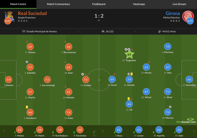 Оцінки матчу Жирона Реал» Сосьєдад від WhoScored