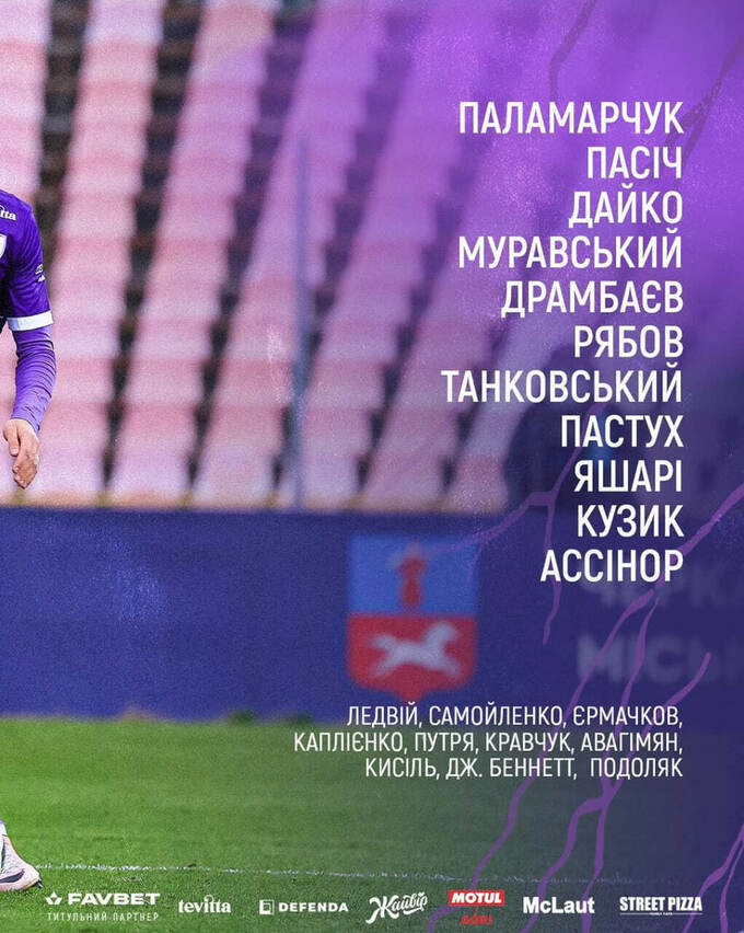Запасні: Турбаєвський, Косівський, Ескінья, Пердута, Малиш, Дришлюк, Руан, Саленко, Горбач, Маткевич