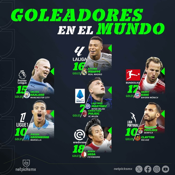 Другим іде Кіліан Мбаппе з мадридського Реала (16 м’ячів у Ла Лізі і 32 пункти).