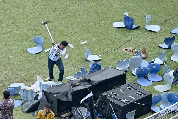 Після заходу сотні фанатів вибігли на поле, почали ламати сидіння, нищити трибуни, кидати предмети та зривати сітки воріт на стадіоні місткістю 85 тисяч глядачів.