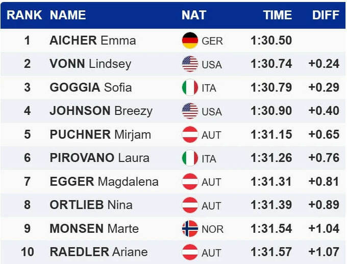 Переможцем у Швейцарії стала німкеня Емма Айхер, яка обійшла зіркову супернику на 0.24 секунди.
