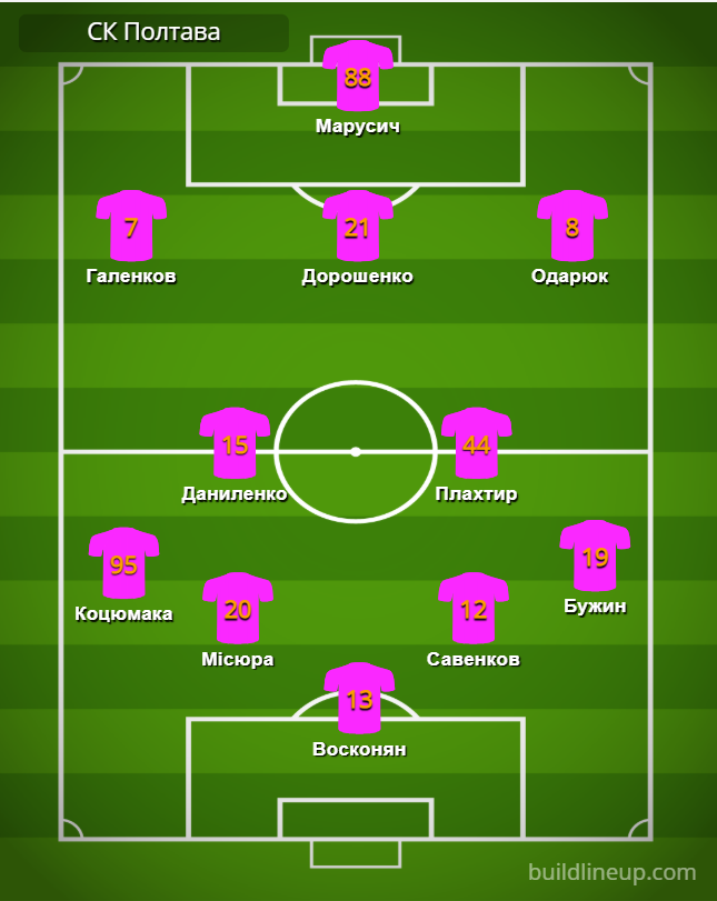 СК «Полтава»: Восконян – Коцюмака, Місюра, Савенков, Бужин (Веремієнко, 69) – Даниленко (Шаповалов, 83), Плахтир – Галенков (Кононов, 83), Дорошенко (Вівдич, 69), Одарюк – Марусич.