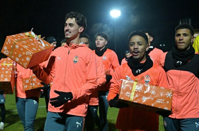 Наприкінці року ФК «Шахтар» традиційно влаштовує святкові заходи для дітей, запрошуючи їх на тренування першої команди та знайомство з гравцями й тренерами. Цього разу на базу у Винниках завітали діти – учасники проєкту «Давай, грай!» (генеральний партнер проєкту – компанія ДТЕК), чиї батьки є працівниками Бурштинської та Добротвірської ТЕС, які щодня стоять на захисті української енергетики.