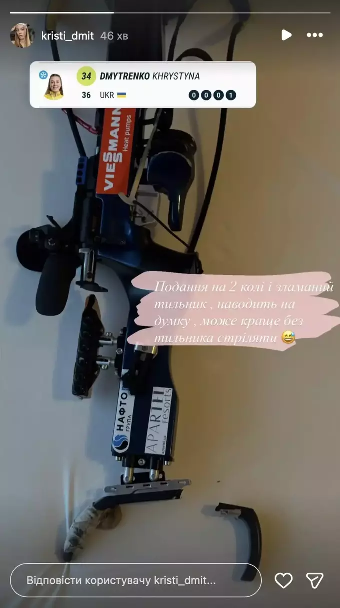 Христина Дмитренко після невдачі на трасі зламала частину гвинтівки