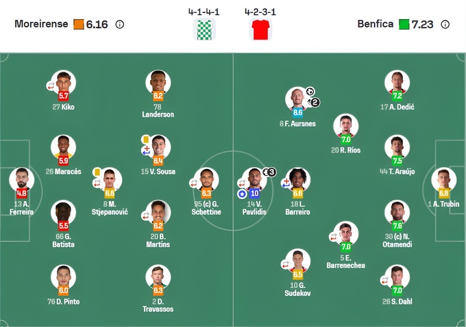 Оцінки матчу «Морейренсе» – «Бенфіка» від SofaScore