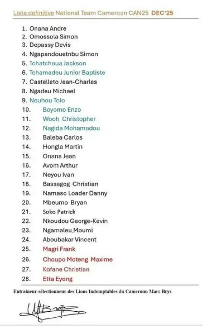Попри позицію Бріса, у документах ФІФА головним тренером Камеруну офіційно вважається Давід Пагу, тож саме його заявка буде чинною на КАН. Турнір стартує 21 грудня в Марокко, і збірна Камеруну підходить до нього в умовах повного хаосу.