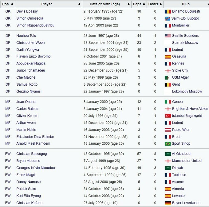 Федерація футболу Камеруну призначила головним тренером Давіда Пагу та оприлюднила заявку з 28 гравців. У ній несподівано не знайшлося місця для ключових футболістів збірної – Андре Онана, Венсана Абубакара та Еріка Шупо-Мотінга. Натомість до складу включили Арно Маеля Камдема, який виступає у шостому дивізіоні Бразилії, де грає за клуб «Спорт Сіноп».