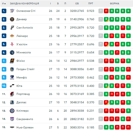 «Оклахома» за 26 матчів закинула 3200 очок, а пропустила 2765. Краща атака, та й захист в топ-5, хоча команда особливо і не напружується, щоб відігравати біля свого кільця. Що за статистикою: