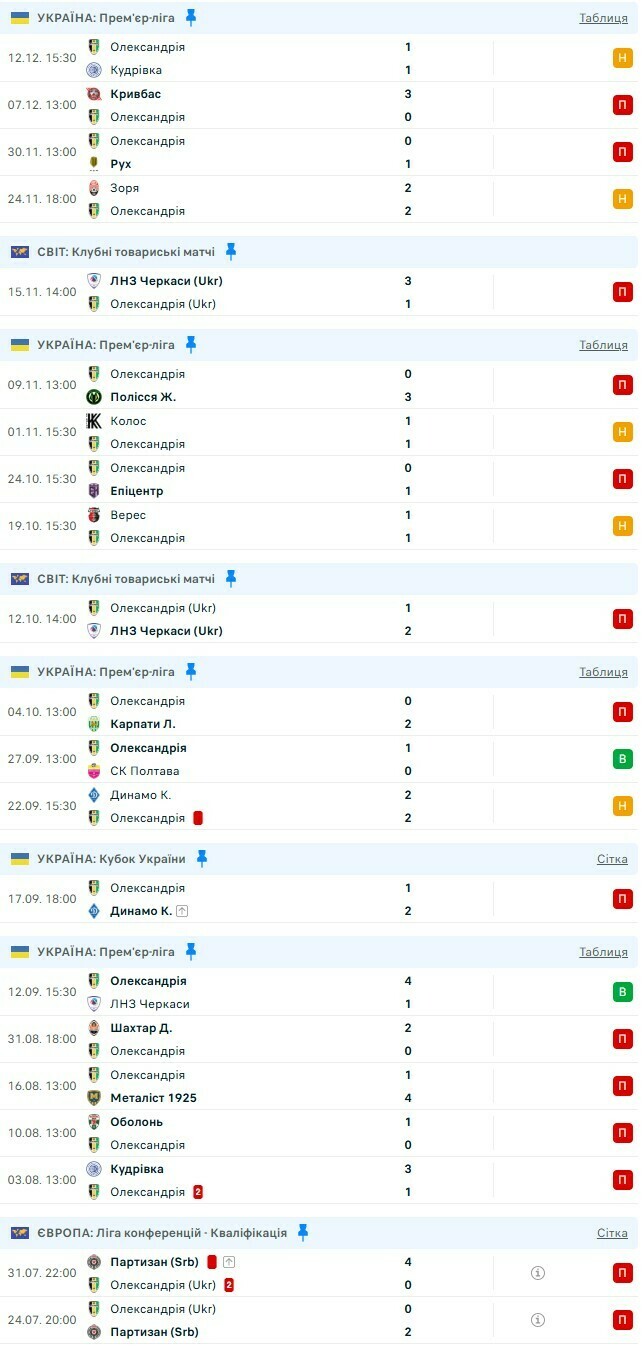 Після 16 турів Олександрія перебуває в зоні вильоту, маючи 11 очок та посідаючи 15-те місце серед 16 команд.