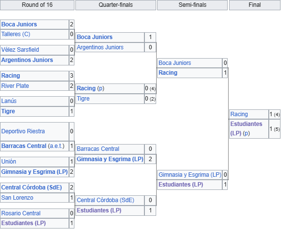 - Команди, що вийшли в Кубок Судамерикана: Рівер Плейт, Расінг, Депортіво Рієстра, Сан-Лоренсо, Тігре, Барракас Сентраль