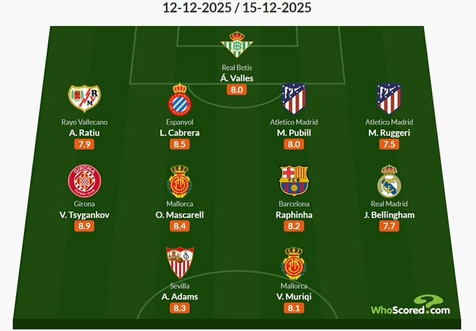 Символічна збірна 16-го туру Ла Ліги (WhoScored)