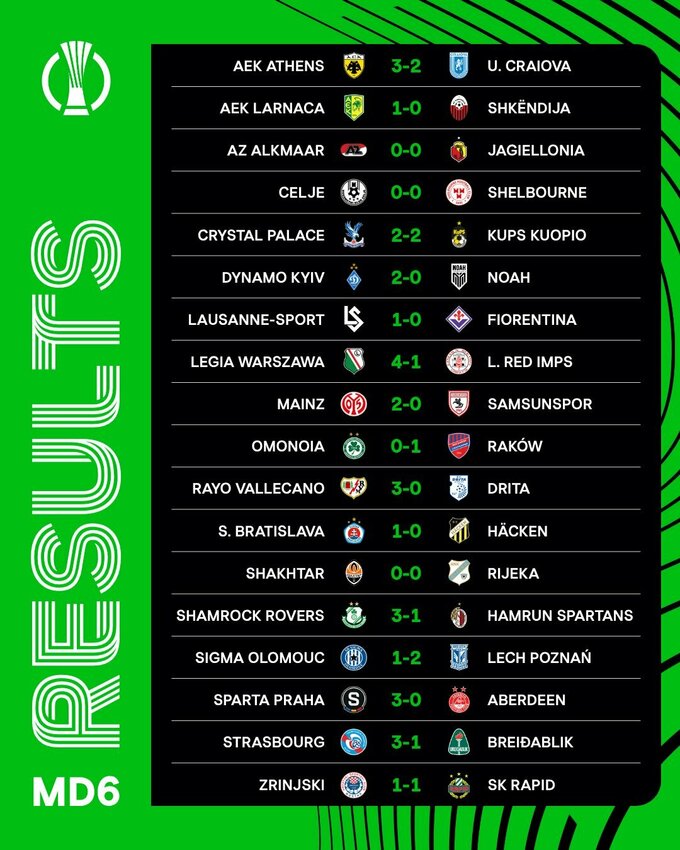 Увечері 18 грудня відбулися матчі заключного 6-го туру Ліги конференцій УЄФА 2025/26.