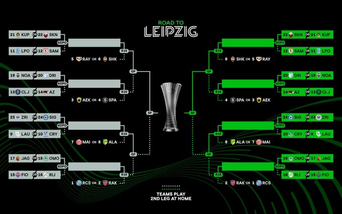 Команди, які посіли 9–24 місця, зіграють у 1/16 фіналу. Жеребкування цієї стадії відбудеться 16 січня 2026 року, а матчі – 19 та 26 лютого. Жеребкування 1/8 фіналу заплановане на 27 лютого, а поєдинки – на 12 та 19 березня. Фінал Ліги конференцій запланований на 27 травня 2026 року в німецькому Лейпцигу.