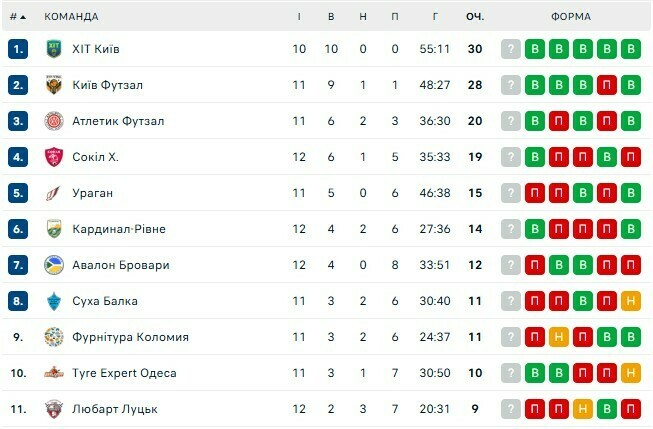 Турнірна таблиця