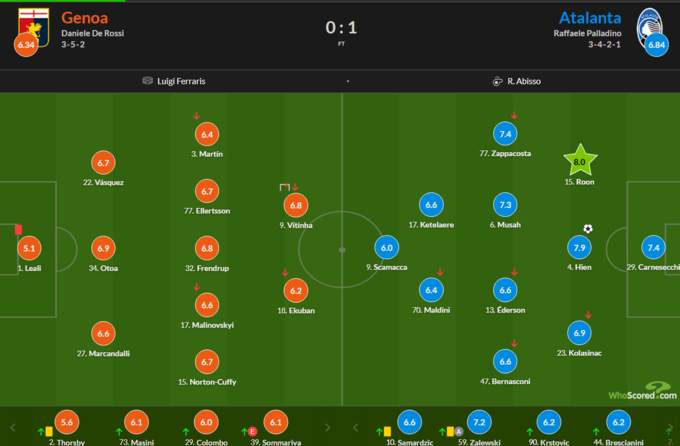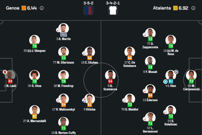 Український хавбек Руслан Маліновський вийшов у стартовому складі своєї команди, провів на полі 67 хвилин, результативними діями не відзначився. Статистичні портали SofaSCore і WhoScored оцінили гру півзахисника в 6,4 і 6,6 балів відповідно.