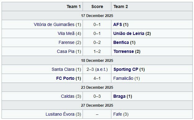 До 1/4 фіналу Кубка Португалії вийшли: Порту, Спортінг, Бенфіка, Брага, AVS, Лейрія [D2], Торренсе [D2].
