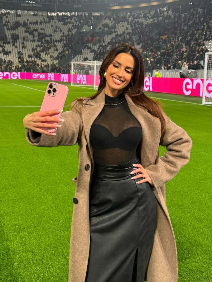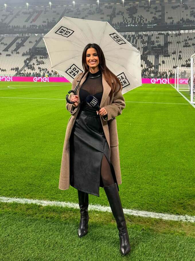 На фото, зроблених безпосередньо зі стадіону, Інкардона працює в передматчевій студії, поєднуючи професійну діяльність із яскравим стилем. Футбольні фанати в захваті від зовнішності журналістки.