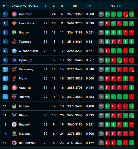 Турнірні таблиці