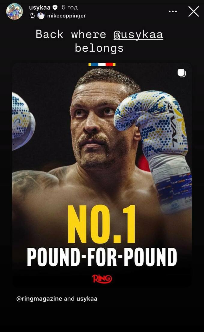 Український боксер оперативно відреагував на повернення на вершину рейтингу. Усик опублікував сторіс у своєму Instagram.