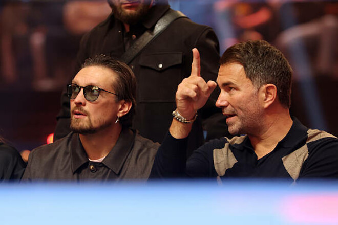 Усик прибув на арену в компанії з впливовим промоутером Едді Хірном, з яким неодноразово перетинався раніше і постійно підтримує теплі стосунки.