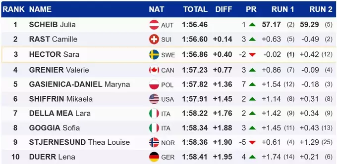 Компанію Юлії та Каміллі на п'єдесталі скалала шведка Сара Хектор, яка втратила тріумф через не зовсім вдалий другий спуск.