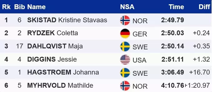 Норвежка на 0.24 секунди відірвалася від другого місця