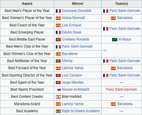 Globe Soccer Awards 2025. Усі володарі нагород: від Дембеле до Роналду