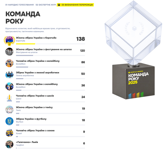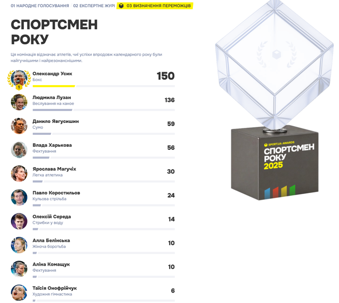 За два дні до завершення 2025 року Sport.ua підводить підсумки масштабного референдуму, метою якого було визначення найкращих спортовця, тренера і команди року. Власне, найкращих атлетів року наше видання починаючи з 2010 року визначає вже в шістнадцяте. Втім, цьогоріч ми вперше вийшли за рамки просто народного вибору і поряд із нашими читачами надали голос 50-ти експертам – зірковим спортовцям, тренерам і функціонерам, а також відомим репортерам з різних видань.