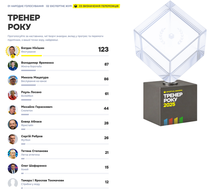 Але завдяки голосуванню експертів Тренером року став наставник жіночої збірної з фехтування на шпагах Богдан Нікішин. Під його керівництвом українки виграли чемпіонат Європи командою, а Влада Харькова стала чемпіонкою світу в особистій першості. Цікаво, що від вболівальників ні Нікішин, ні Яременко балів не отримали. Як і недостатньо було голосів читачів, щоб додаткові бали отримала жіноча збірна з боротьби. В обох випадках визначальною виявилася експертна думка.