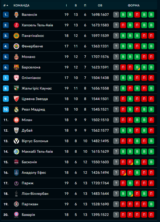 Євроліга. Регулярний чемпіонат. 19-й тур, 30 грудня
