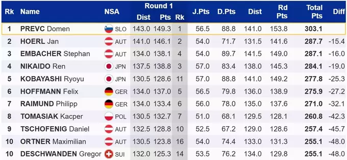 Найближчим конкурентом Превца став австрієць Ян Хьорль, який програв Домену 15.4 бала. Третім фінішував ще один учасник з Австрії – Штефан Ембахер, який у відборі встановив рекорд трампліну.