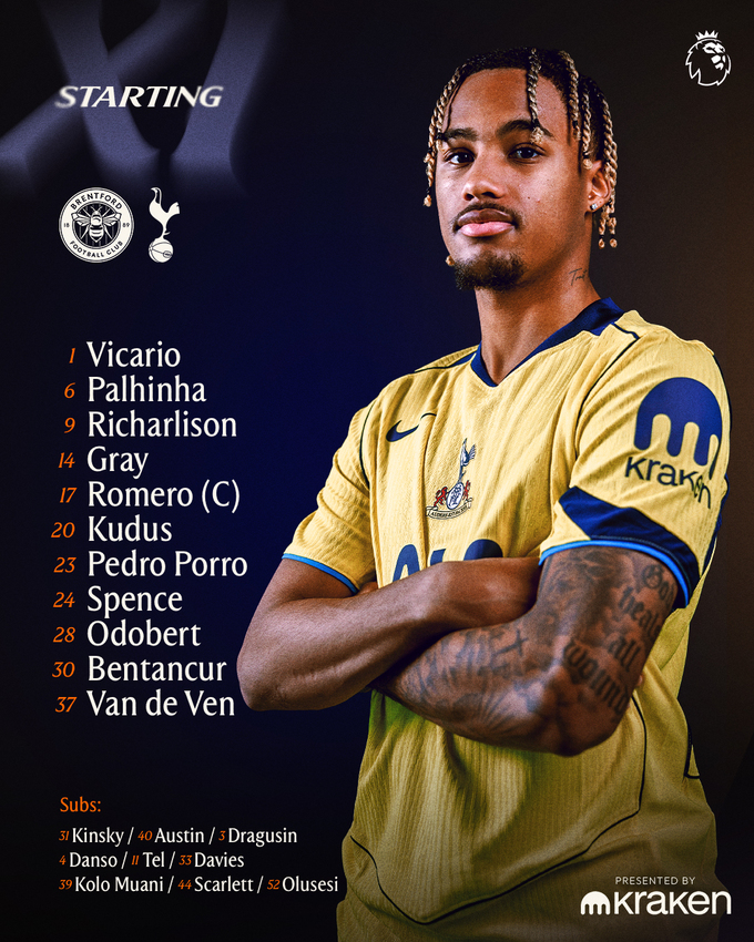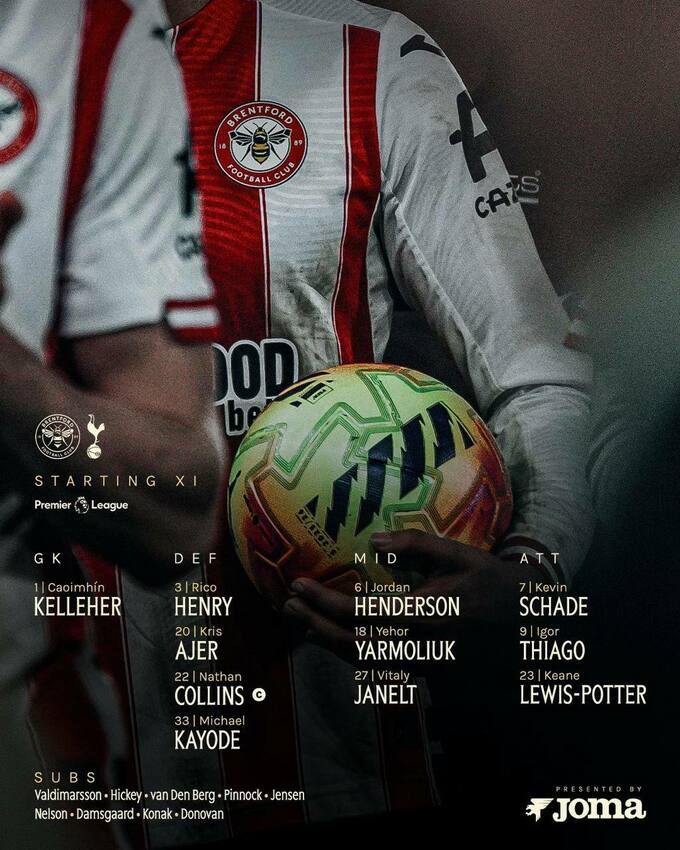 Стартові склади матчу Прем'єр-ліги Брентфорд – Тоттенгем