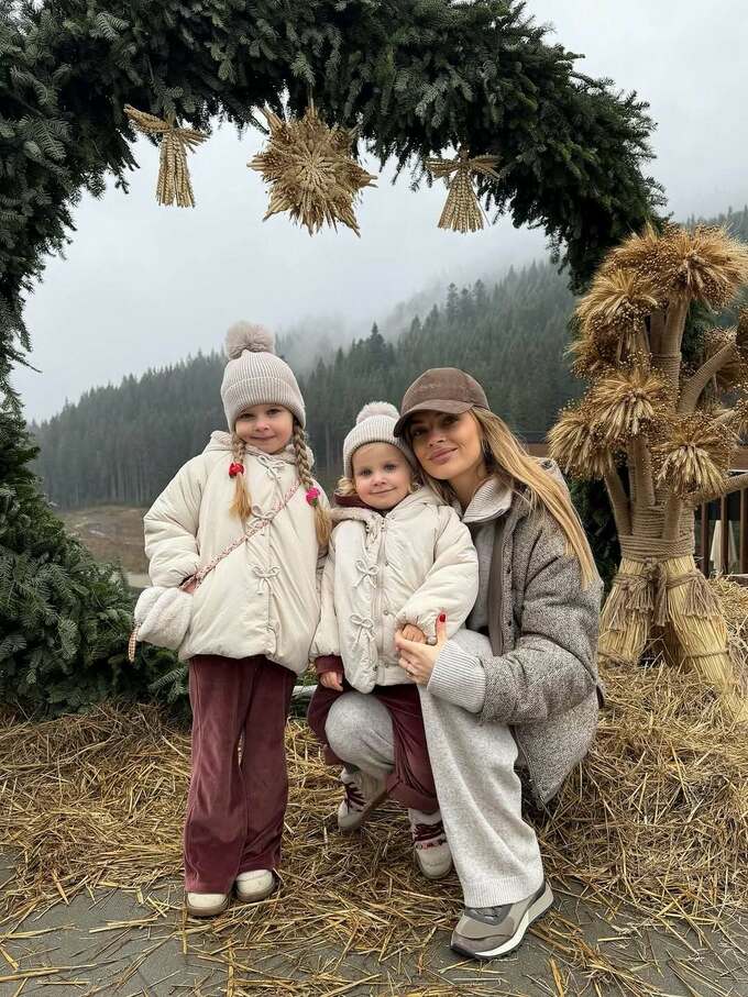 На світлинах Влада разом із доньками насолоджується зимовими Карпатами – прогулянками засніженим лісом і сімейним відпочинком у горах.