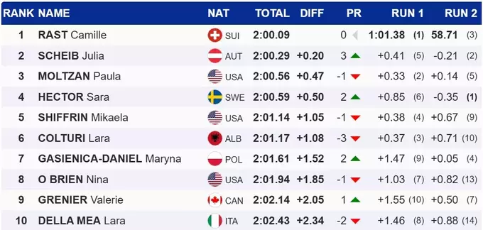 Відома спортсменка Мікаела Шиффрін показала п'ятий результат, програвши лідерці 1.05 секунди.