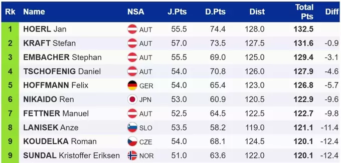 Переможцем відбору став австрієць Ян Хьорль – 132.5 бала за стрибок на 128 метрів. Другу та третю позиції посіли ще два учасники з Австрії – Штефан Крафт та Штефан Ембахер.
