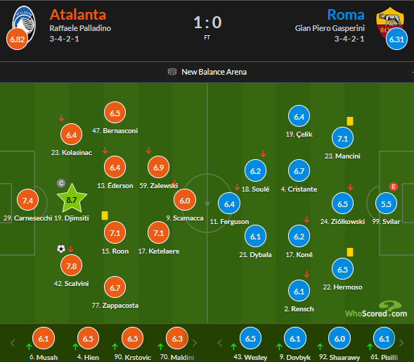 Найкращим гравцем матчу був визнаний центральний захисник і капітан Аталанти Берат Джимсіті (8,7).