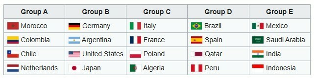 - Група A: Марокко, Колумбія, Чилі, Нідерланди