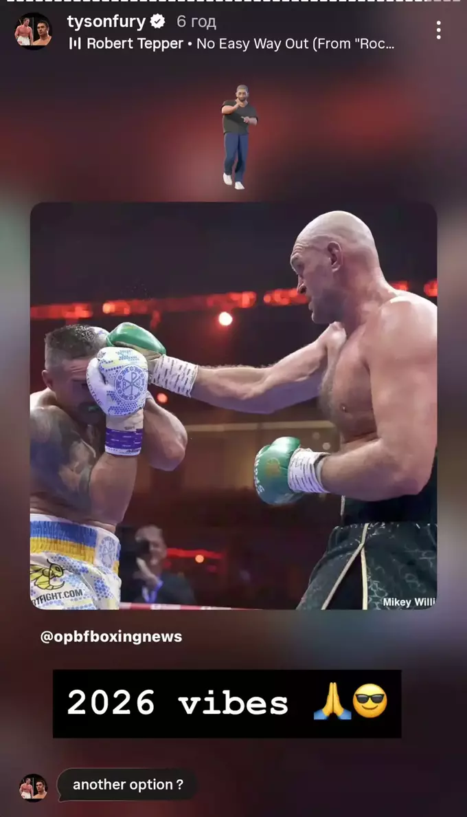 Колишній чемпіон світу в надважкій вазі британський боксер Тайсон Ф’юрі знову підігрів інтерес до можливого третього бою проти української зірки хевівейту Олександра Усика. Британець опублікував у сторіс фото їхнього поєдинку, супроводивши його інтригуючим підписом.