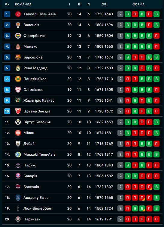 Двома матчами завершився 20-й тур Євроліги