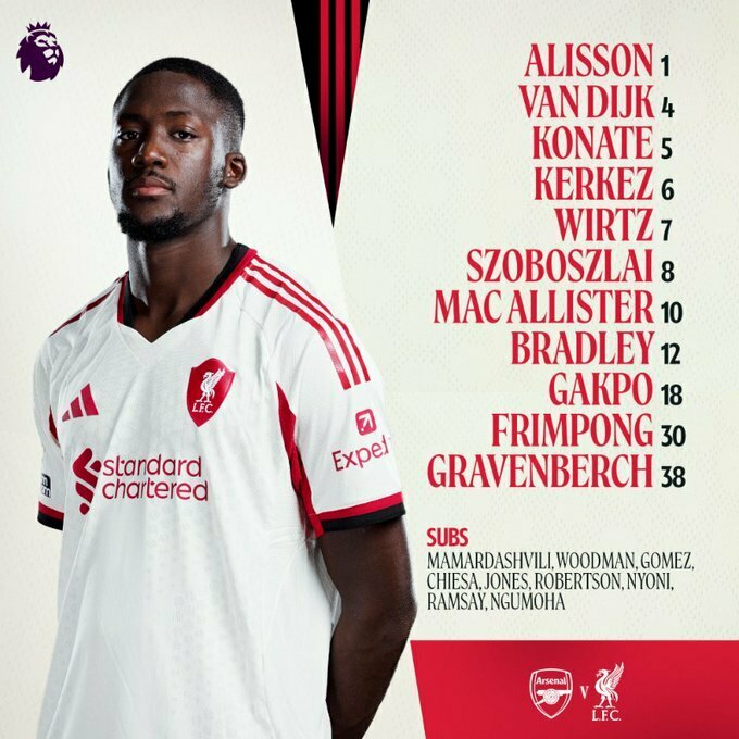 Ліверпуль: Аліссон, ван Дейк, Конате, Керкез, Вірц, Собослаї, Макаллістер, Бредлі, Гакпо, Фрімпонг, Гравенберх.