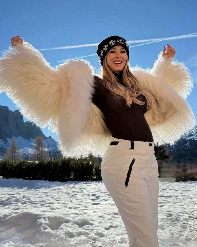 Італійська телеведуча Ділетта Леотта опублікувала в Instagram серію свіжих світлин із зимового відпочинку в Доломітах.