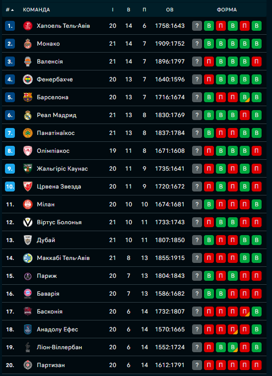Євроліга: Реал із Ленем переміг Маккабі, сенсація в Дубаї, поразка Валенсії