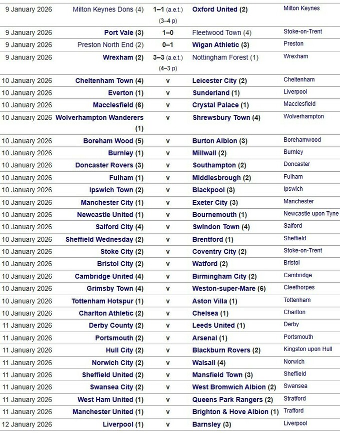 Кубок Англії. 1/32 фіналу, 9 січня 2026