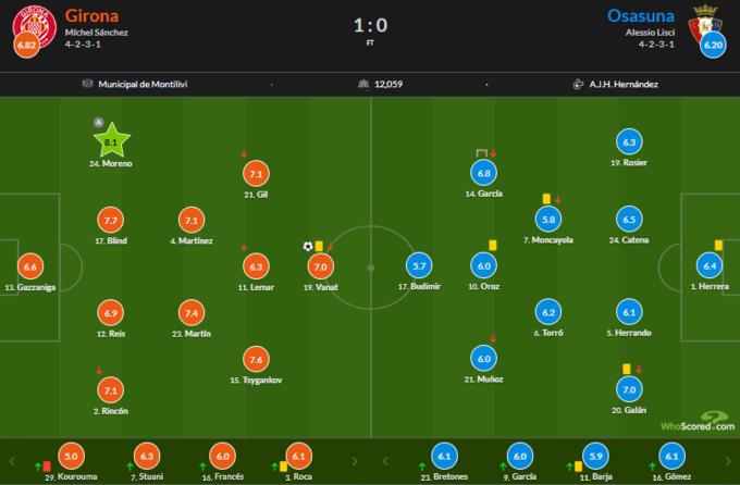 Український нападник «Жирони» Владислав Ванат провів на полі 88 хвилин і приніс своїй команді перемогу, відзначившись точним ударом п'ятою. Статистичні портали SofaScore і WhoScored оцінили гру форварда в 7,4 і 7,0 балів відповідно.