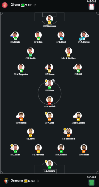 Стали відомі оцінки вінгера Віктора Циганкова та нападника Владислава Ваната за матч, в якому їх «Жирона» з рахунком 1:0 здолала «Осасуну».