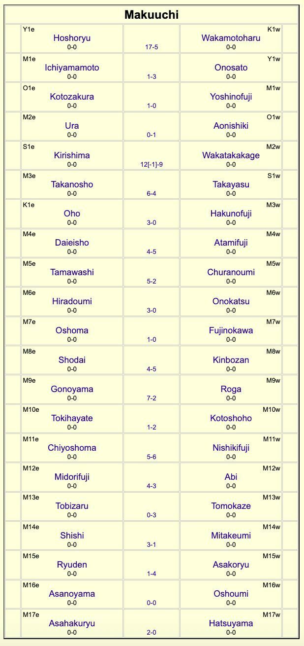 Продовжує виступи в Макуучі й ще один українець Шіші Масару (справжнє ім’я – Сергій Соколовський). До Hatsu Basho він підходить у ранзі маеґашіри №14. Стартову сутичку Сергій проведе проти ще одного М14, колишнім одзекі Гісаші Мітакеумі.