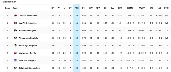Рейнджерс передостанні у Столичному дивізіоні.