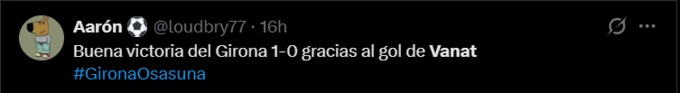Aarón: Перемога Жирони з рахунком 1:0 завдяки голу Ваната.